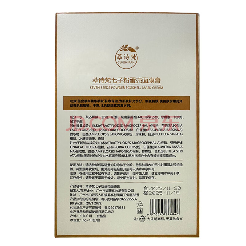 商品相册:佰萃莱面膜七子粉蛋壳面膜膏草本旗舰免调软膜面膜霜6g*10条 3盒第