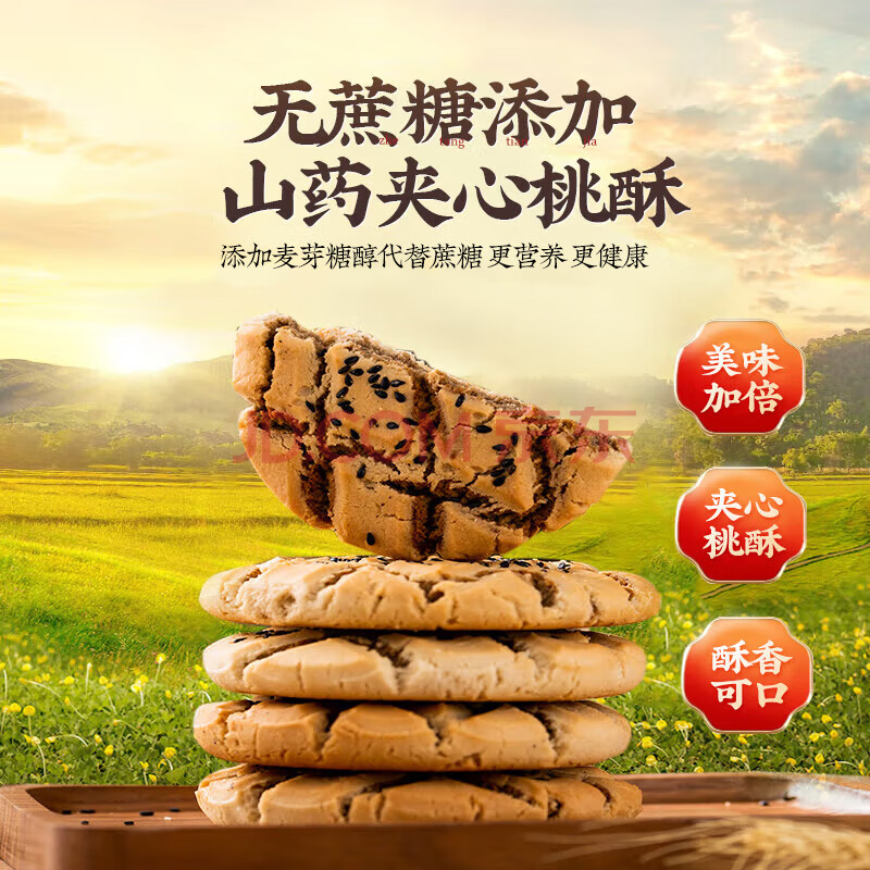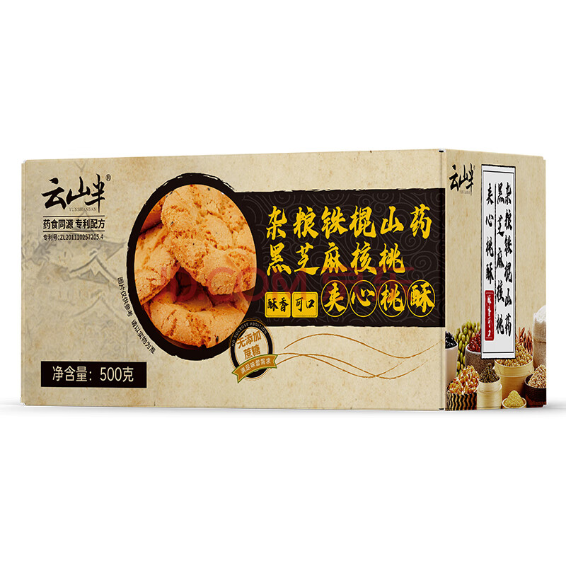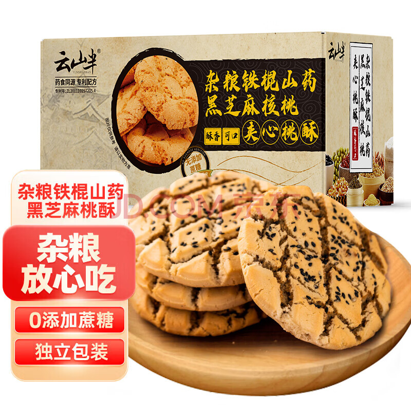 商品相册:云山半核桃酥饼干500g约12袋铁棍山药黑芝麻夹心0蔗糖糕点 早餐曲奇第
