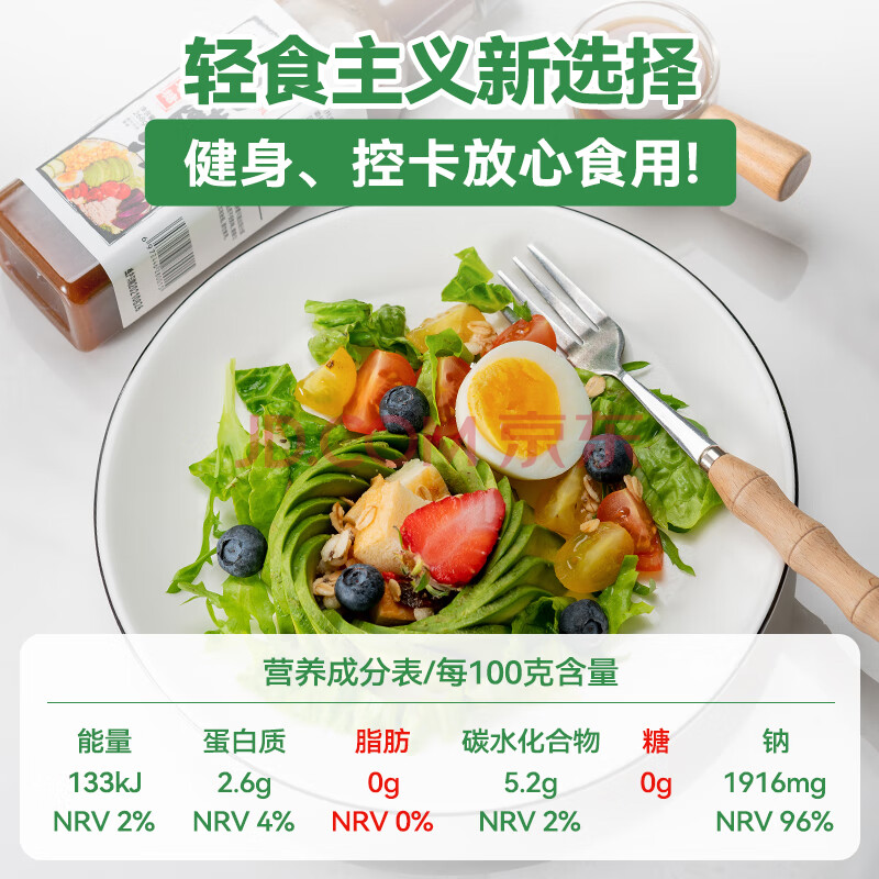 商品相册:云山半0脂肪0蔗糖油醋汁沙拉酱268g零添加蔗糖低脂轻食水煮菜沙拉凉拌汁第