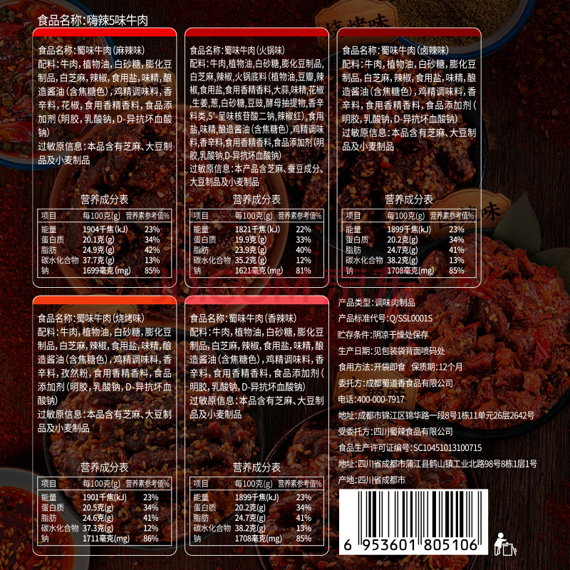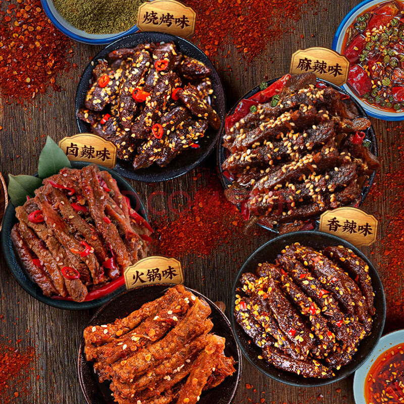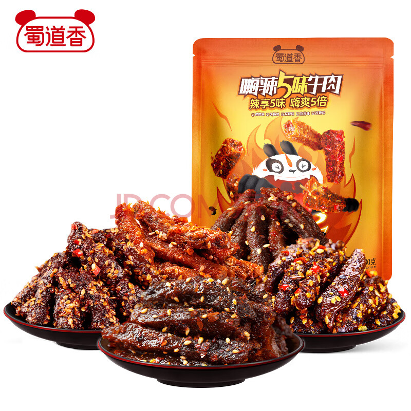 商品相册:蜀道香川味嗨辣牛肉干500g 5种口味 麻辣肉脯 四川特产 解馋零食 量贩装第