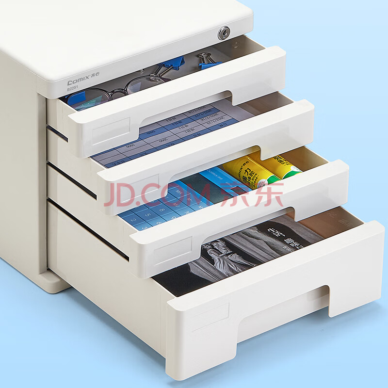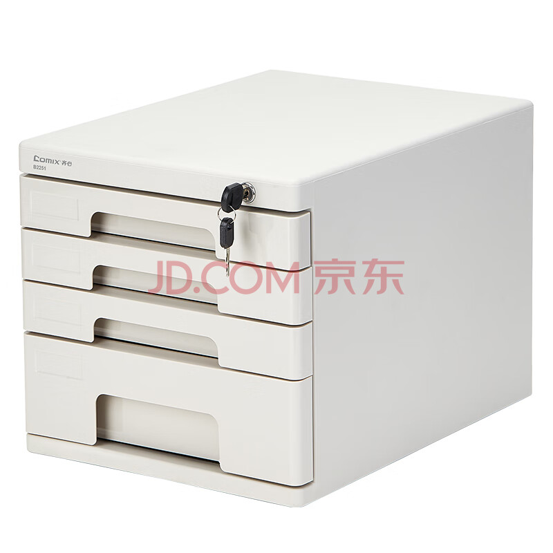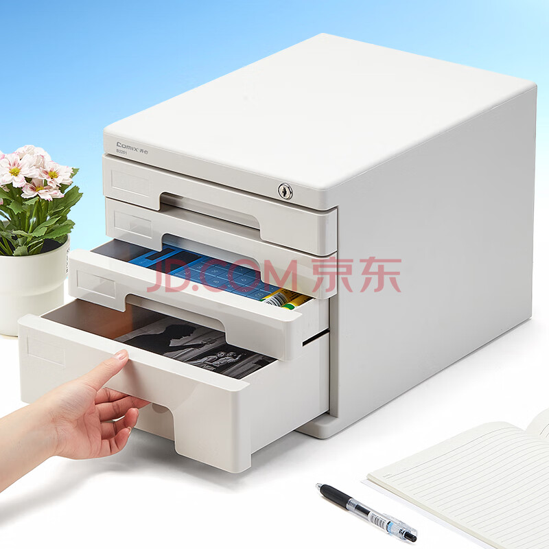 商品相册:齐心(Comix)4层带锁桌面文件柜抽屉式拉手塑胶收纳柜带索引标签办公用品 灰色B2251第