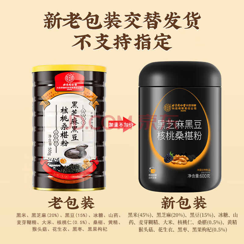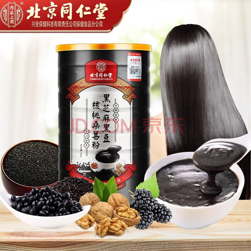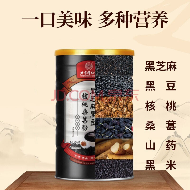 商品相册:同仁堂黑芝麻糊五黑粉核桃黑豆黑米桑葚粉无蔗糖搭养胃即食营养代餐500g第