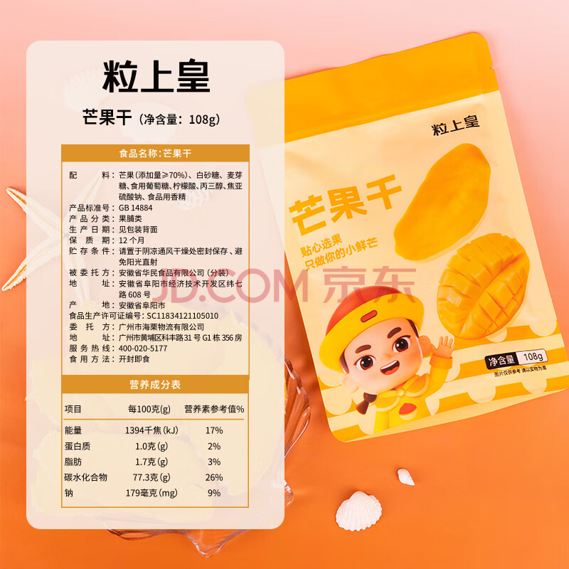 商品相册:粒上皇 芒果干108g 休闲零食办公室果脯蜜饯厚切果干小零食第