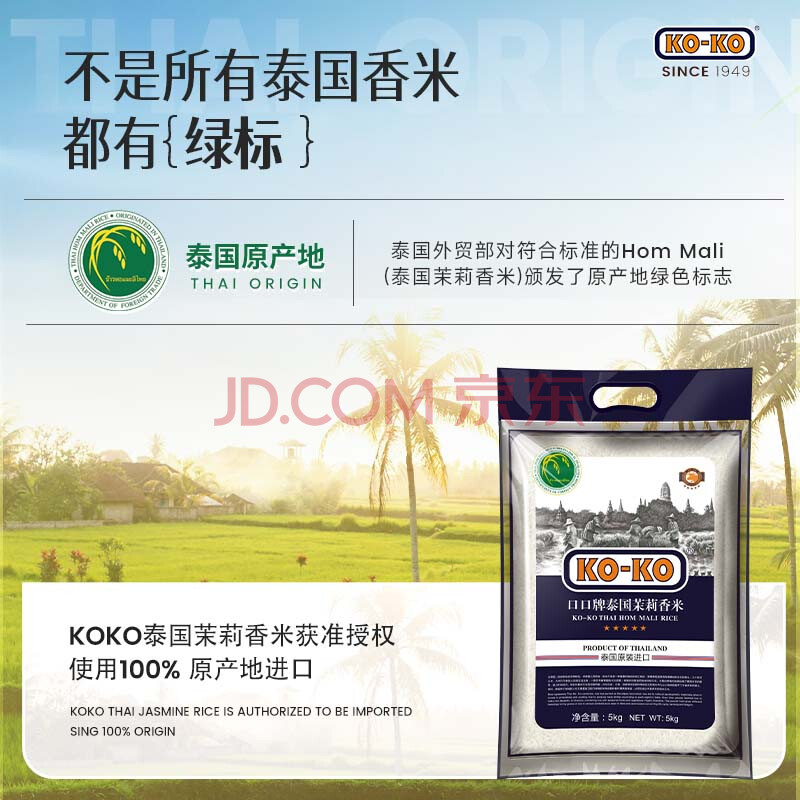 商品相册:KO-KO泰国茉莉香米 大米10斤 原装进口 长粒米 koko泰国香米 (口口牌)第