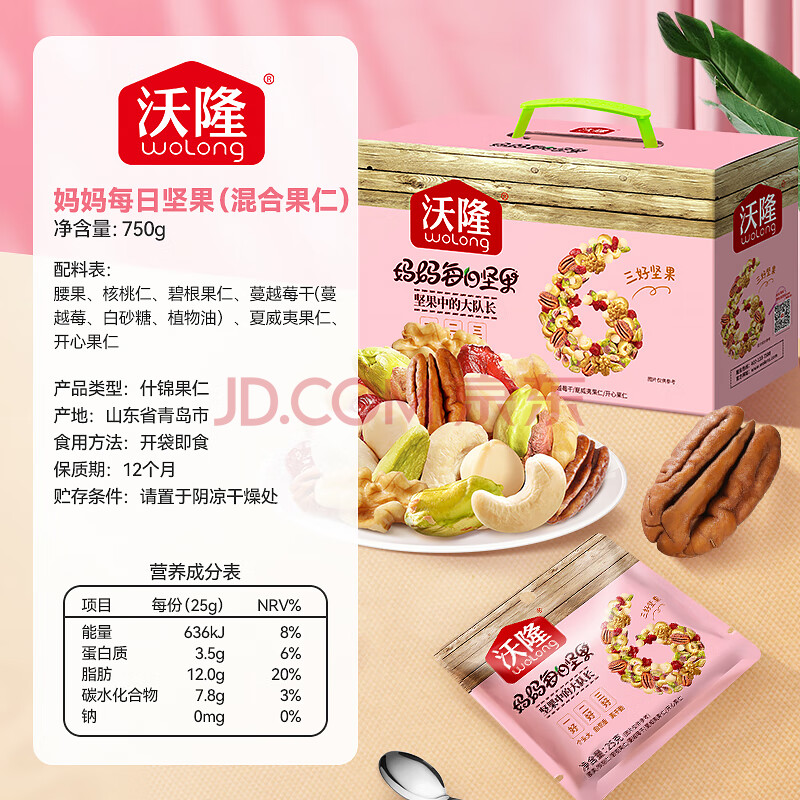 商品相册:沃隆妈妈每日坚果750g/30袋孕妇零食送妈妈坚果礼盒零食大礼包第