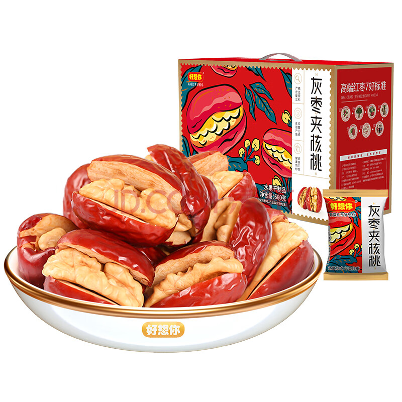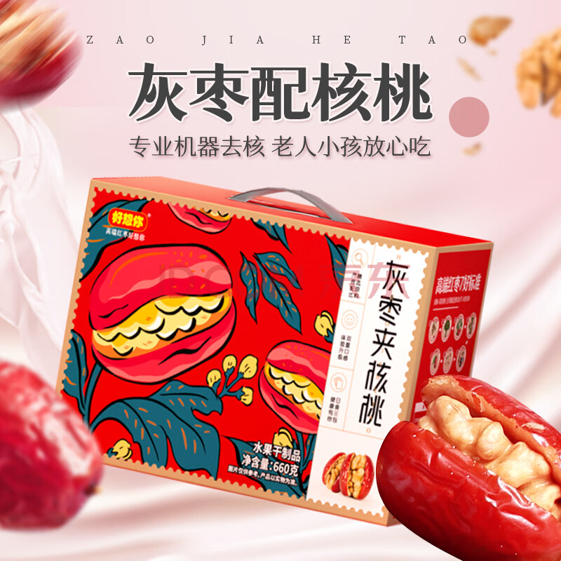 商品相册:好想你 灰枣夹核桃660g/盒 礼盒坚果果干红枣新疆大礼包红小派第