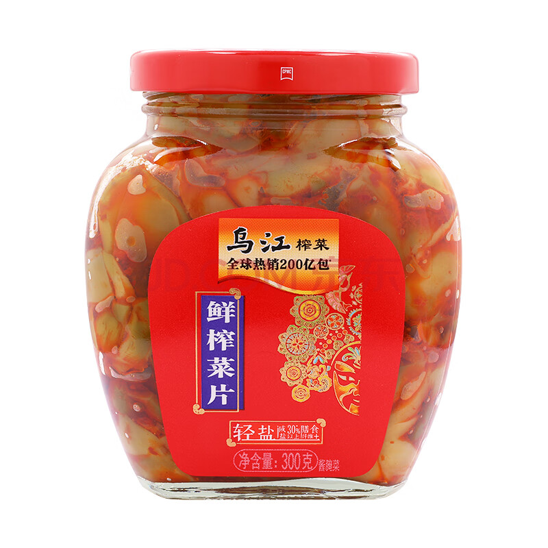 商品相册:乌江榨菜 下饭菜 餐前开味小菜 酸辣鲜榨菜片 300g瓶装 佐餐轻盐咸菜第