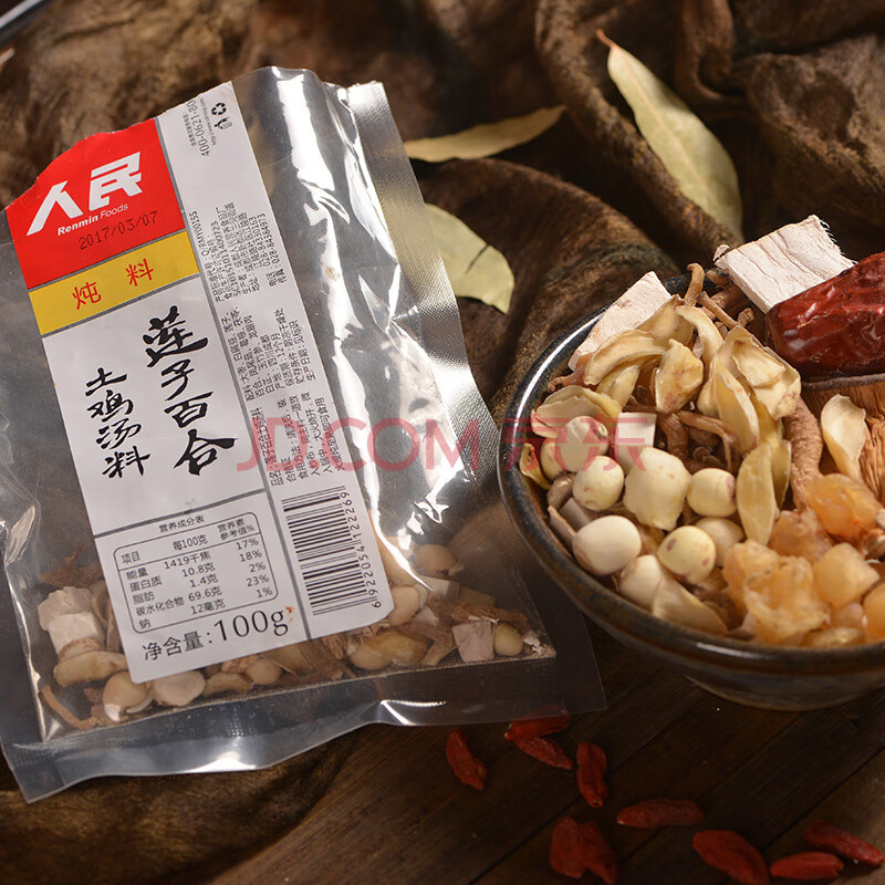 商品相册:人民食品 莲子百合土鸡汤料100g 煲汤材料葛根白芷玉竹参广东炖汤料包第
