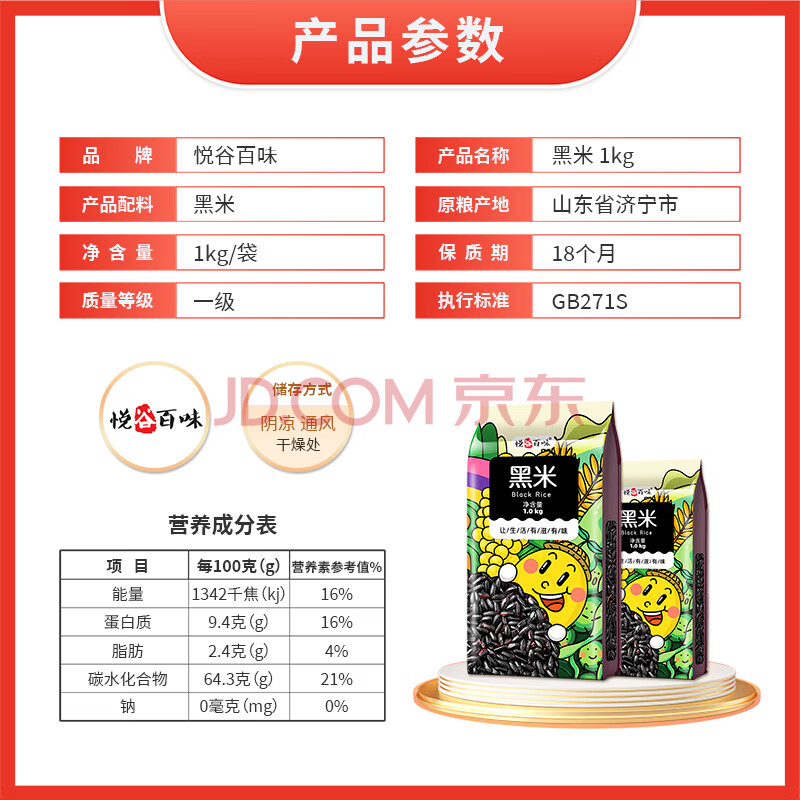 商品相册:悦谷百味 黑米2斤(无添加无染色 五谷杂粮 东北粗粮 黑香米 粥米搭档)第