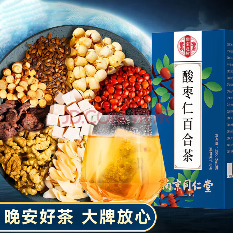 商品相册:南同四海同仁堂酸枣仁茯苓百合茶莲子甘草浮小麦大红枣汤安神助眠养生茶包第