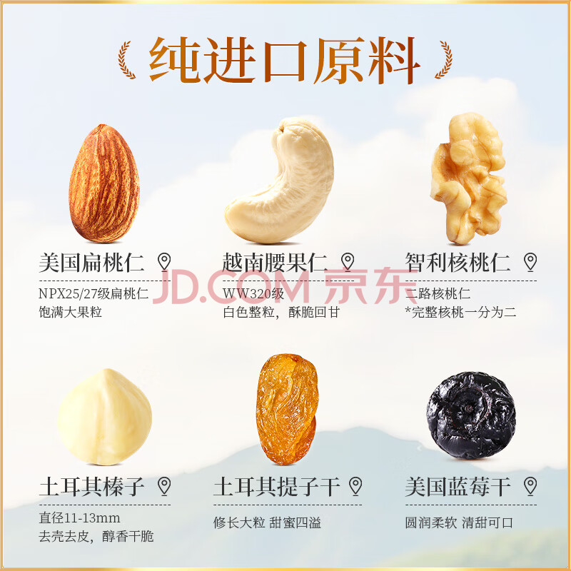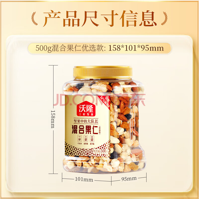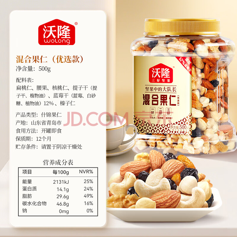 商品相册:沃隆混合坚果500g罐装每日坚果果干休闲零食腰果核桃仁榛子仁蓝莓干第