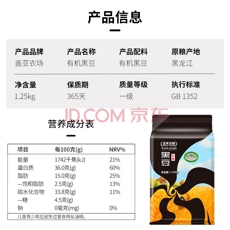 商品相册:盖亚农场有机黑豆2.5斤(无染色 绿芯黑大豆打豆浆 东北杂粮 粗粮真空)第