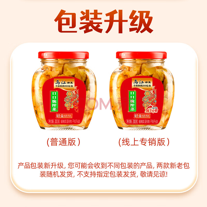 商品相册:乌江榨菜 下饭菜 爽脆下饭 口口脆榨菜丁 300g瓶装 佐餐下饭轻盐咸菜第