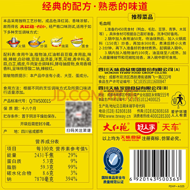 商品相册:大红袍手工牛油中国红火锅底料 冒菜麻辣烫烧菜调料400g4-5人份第