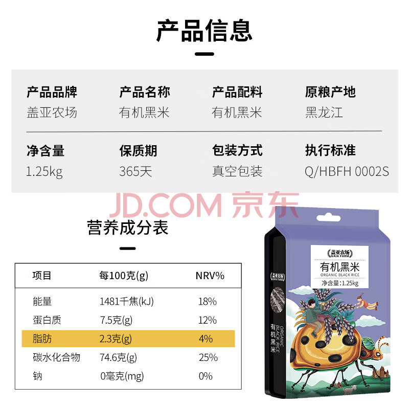 商品相册:盖亚农场有机黑米2.5斤 东北五谷杂粮粗粮粥米饭伴侣第