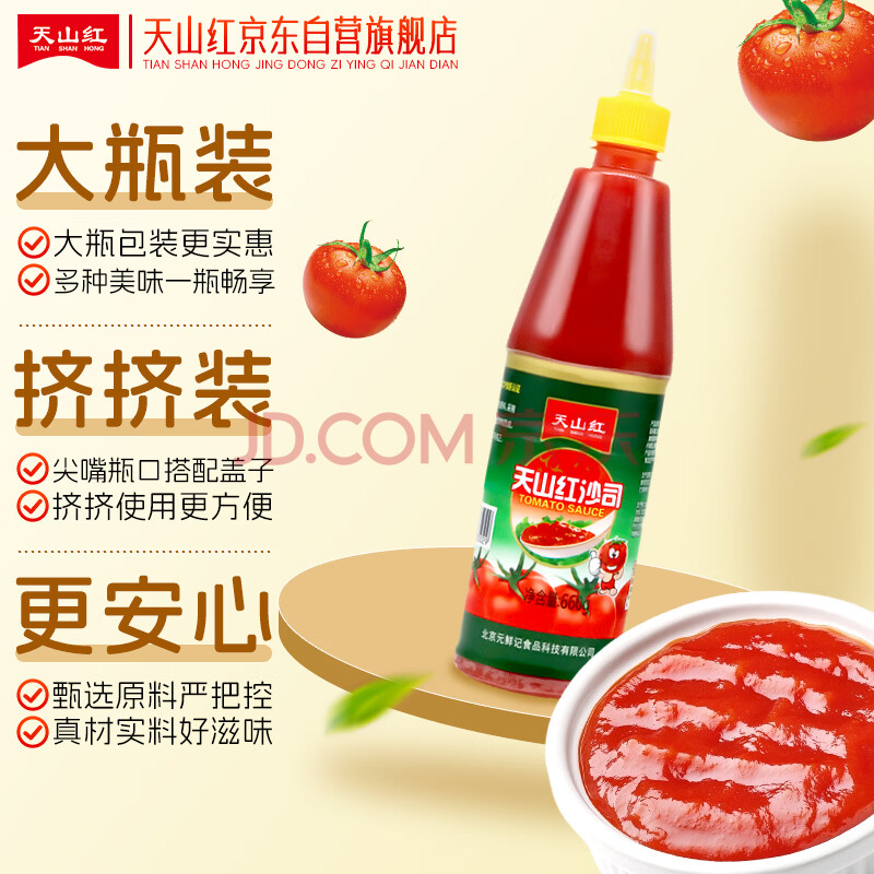 商品相册:天山红&天山红日番茄沙司 番茄酱 调味酱挤挤装660g瓶装第