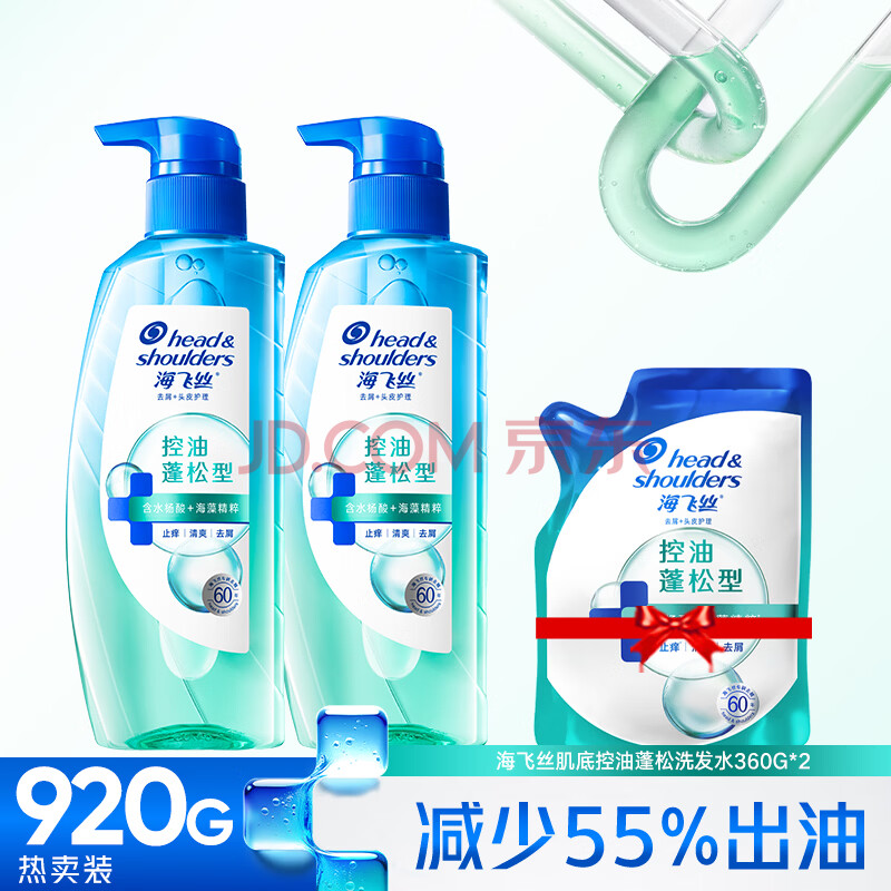 商品相册:海飞丝控油蓬松洗发水套装360g*2+200g头皮肌底控油瓶去屑洗头膏洗发露第