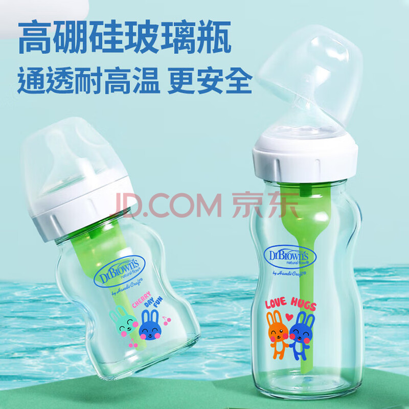 商品相册:布朗博士防胀气奶瓶套装新生儿专用(0-3月玻璃150ml+3-6月玻璃270ml)萌兔第1张/共6