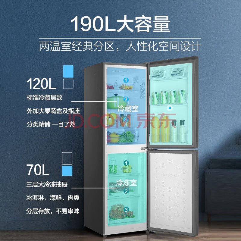 商品相册:海尔(Haier)190升风冷无霜两门冰箱DEO净味保鲜智能电子控温BCD-190WDCO第