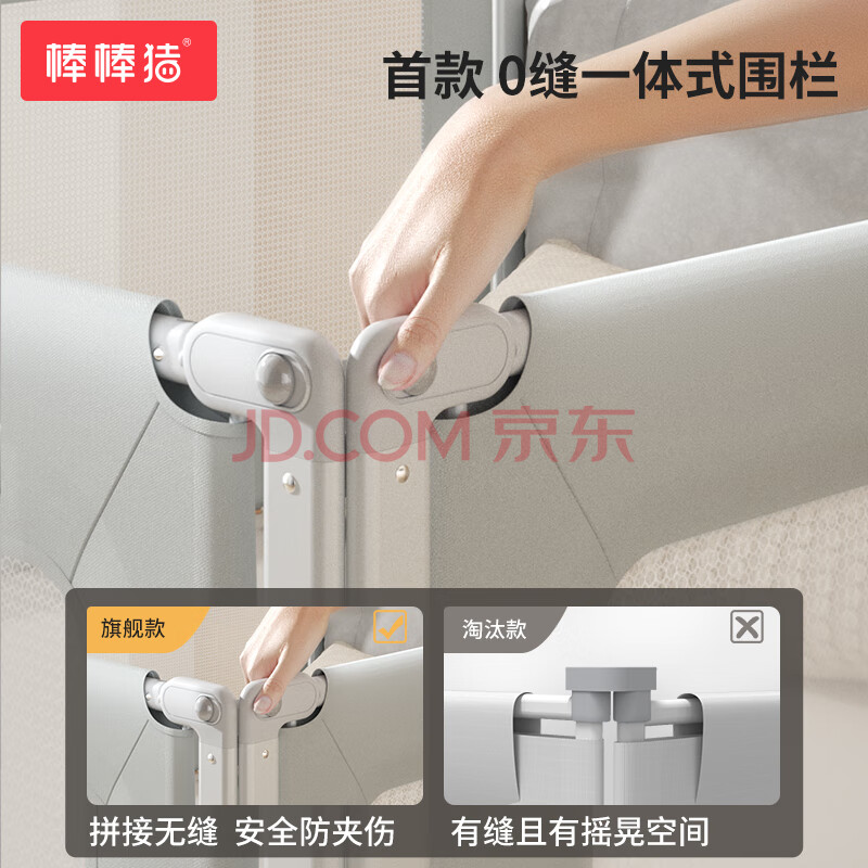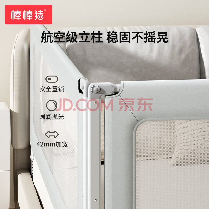 商品相册:棒棒猪床围栏婴儿童床上护栏宝宝防摔防掉床护栏1.8米 银河灰 单面装第
