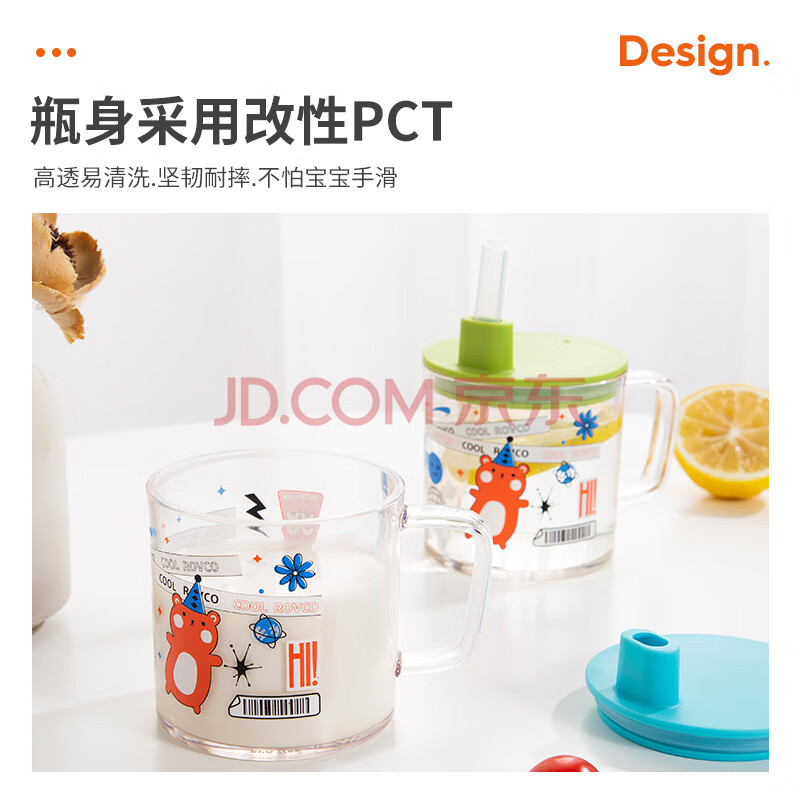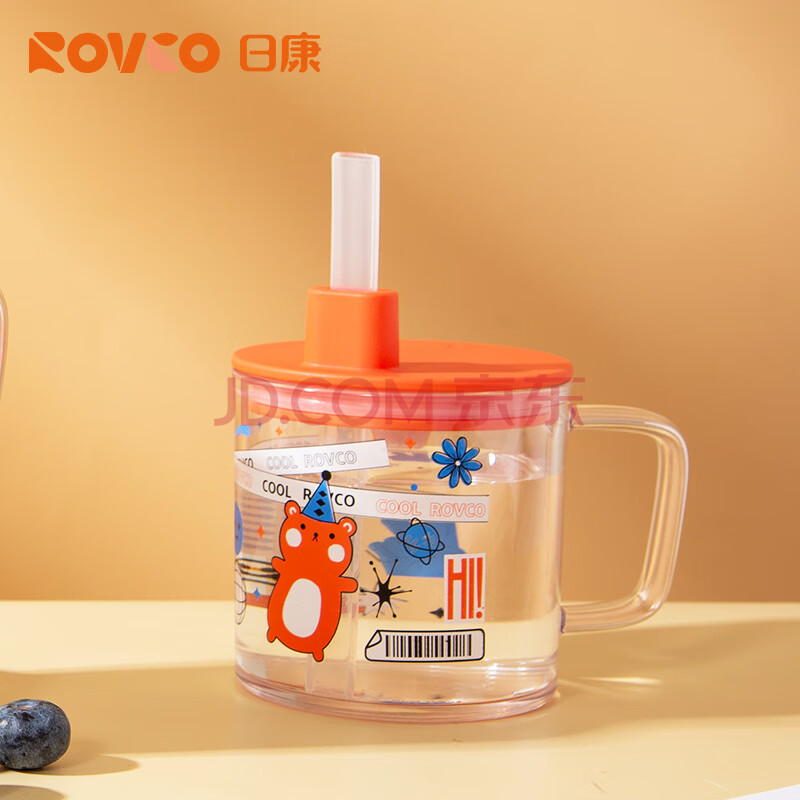 商品相册:日康(rikang)牛奶杯 儿童水杯带盖吸管带手柄学生水杯240ML B1055-3 红色第