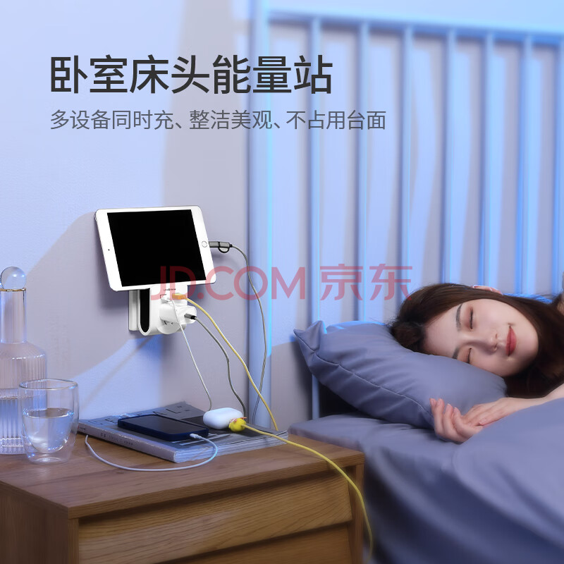 商品相册:吉屋轻智多功能USB插座 场景支架USB+Type-c充电 插排/电源转换器/86型墙壁转换插头/一转多插头第