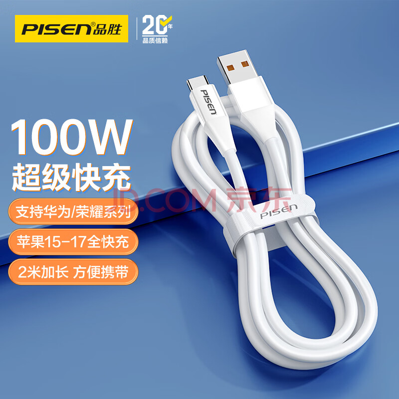 商品相册:品胜Type-C数据线适用华为充电线6a快充100W/88W/66W通用Pura70/mate80pro小米手机苹果17/16/15车载2m第