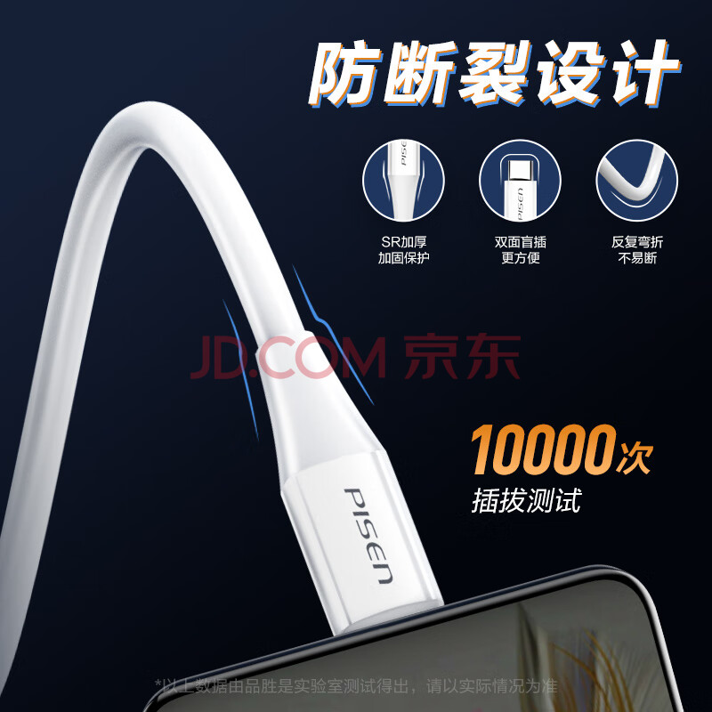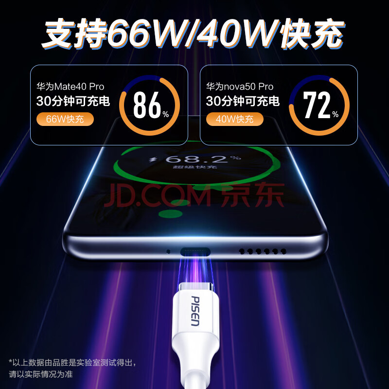 商品相册:品胜Type-C数据线6a/5a快充100W/66W充电线通用华为Mate80pro/Pura7060小米oppo安卓USB-C手机平板车载第