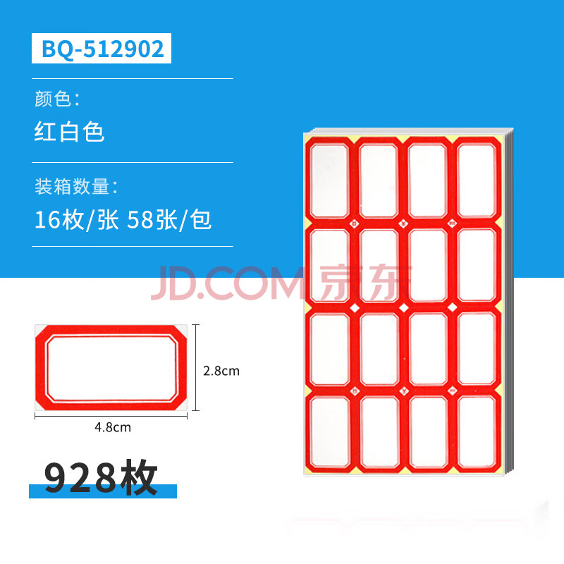 商品相册:NVV 标签贴纸 大号928枚48*28mm不干胶贴纸 自粘性口取纸姓名字贴价格标签便利贴 BQ-512902红色第