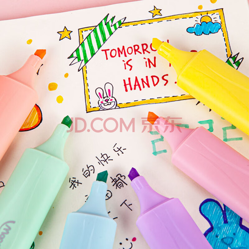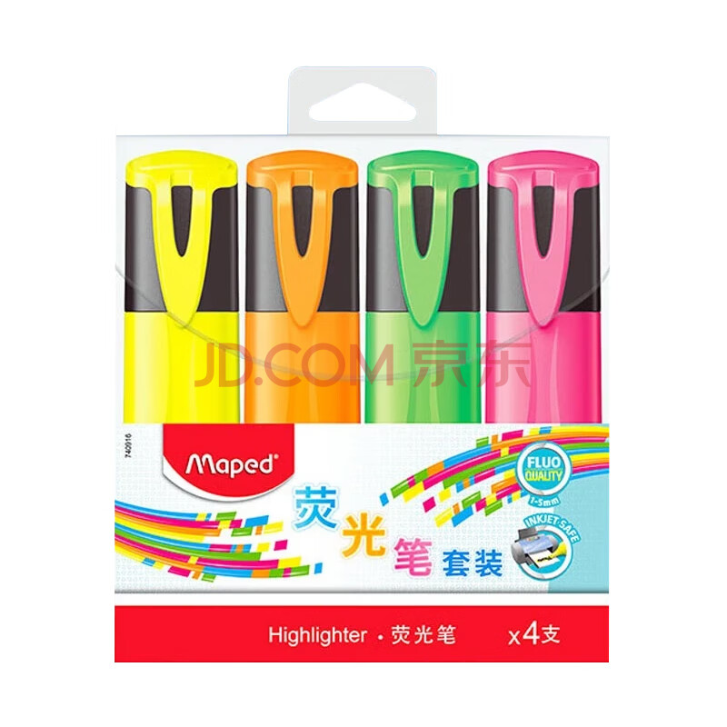 商品相册:马培德荧光笔4色套装 彩色荧光笔划重点醒目标记笔 儿童学生手账手绘记号笔粗头办公学习文具740916CH第
