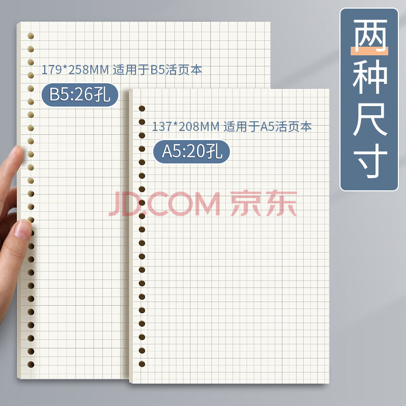 商品相册:法拉蒙 活页纸加厚方格替芯b5活页本笔记本子可拆卸活页内芯26孔替换芯 B5方格内芯(26孔)第