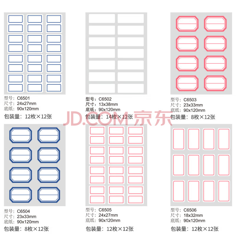 商品相册:齐心(Comix)144枚24*27mm蓝框自粘性标签贴纸姓名贴 不干胶标贴价格贴文具C6501第