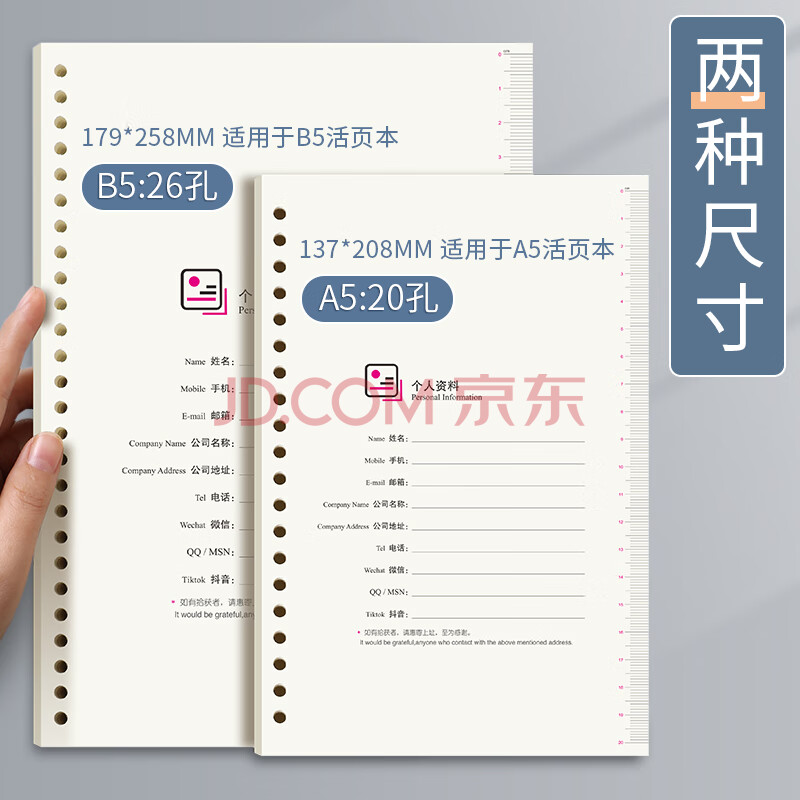 商品相册:法拉蒙 活页纸加厚康奈尔替芯a5活页本笔记本子可拆卸活页内芯20孔替换芯 A5横线功能页款(20孔)第