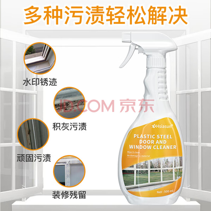 商品相册:Hsiasun塑钢门窗清洗剂500ml强力去污渍装修开荒保洁擦亮窗户门框清洁剂第