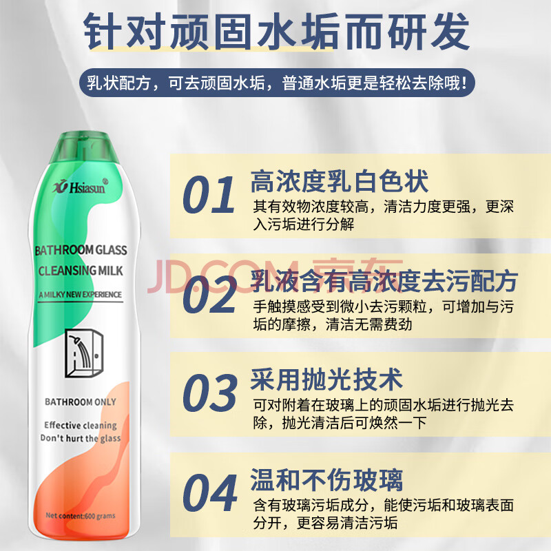 商品相册:Hsiasun浴室清洁剂600g玻璃水龙头水垢清洗剂家用卫生间淋浴房厕所清洁乳第