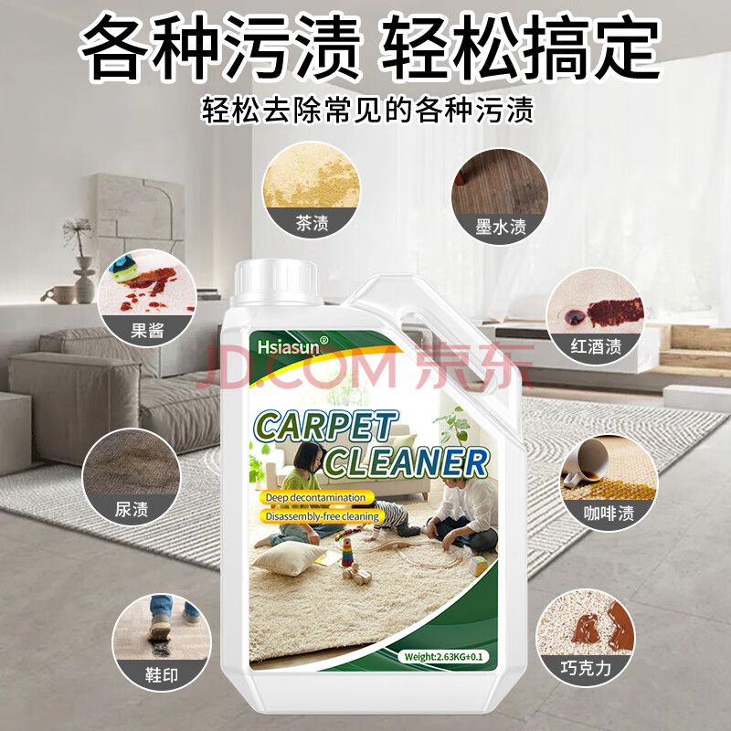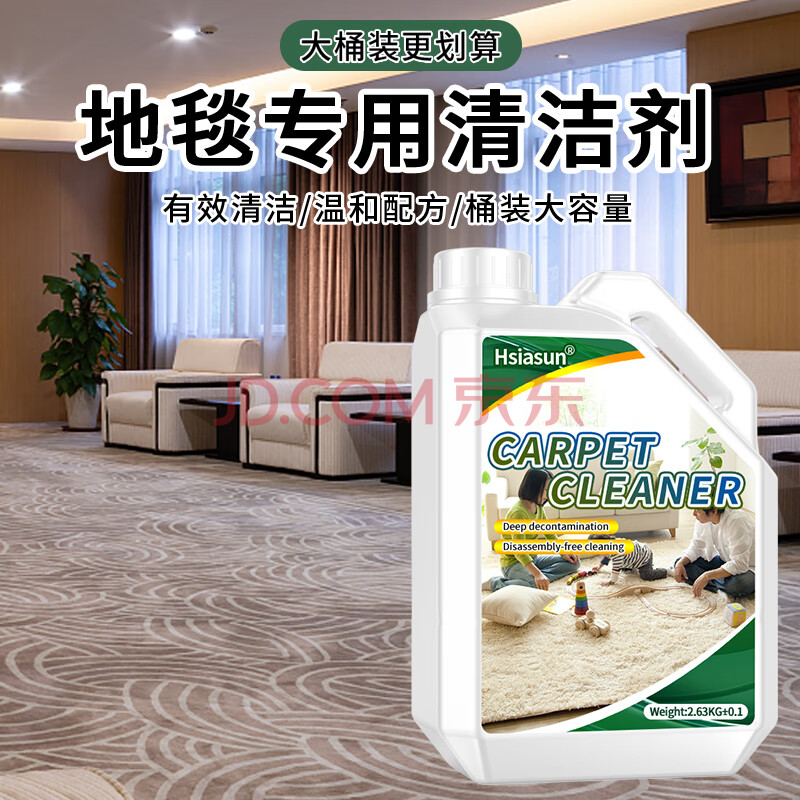 商品相册:Hsiasun地毯清洁剂2.63kg布沙发床垫窗帘酒店地毯去污清洗剂去油污免水洗第