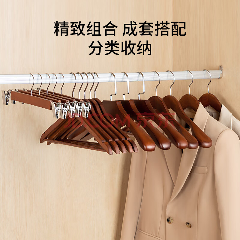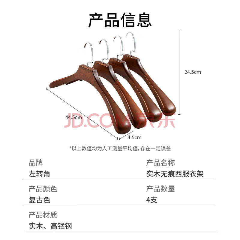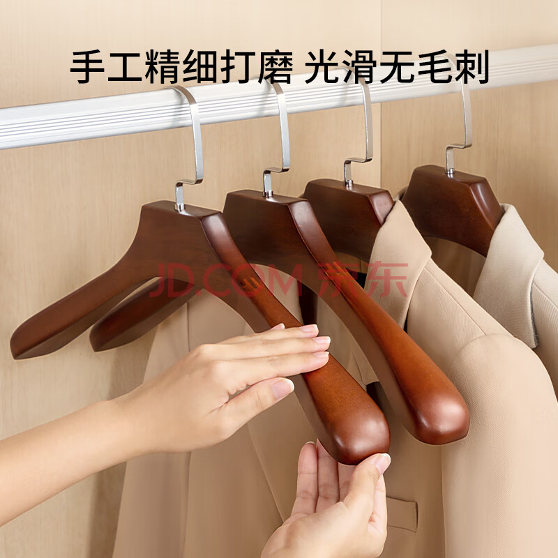 商品相册:左转角实木衣架木质西装服大衣架挂衣服宽肩无痕衣服挂高档衣撑子复古色第1张/共7