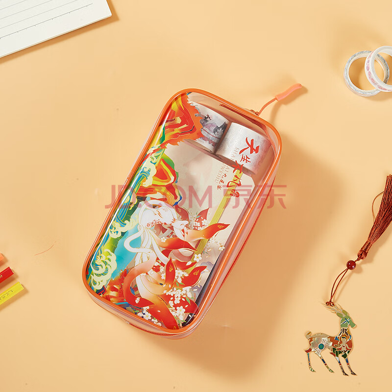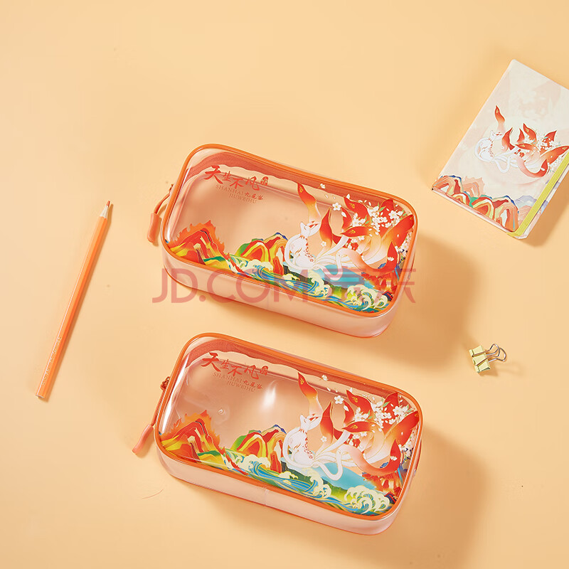 商品相册:齐心(Comix)山海经IP联名 透明笔袋学生学习必备文具盒 大容量收纳笔袋初中生 SHAS0007第