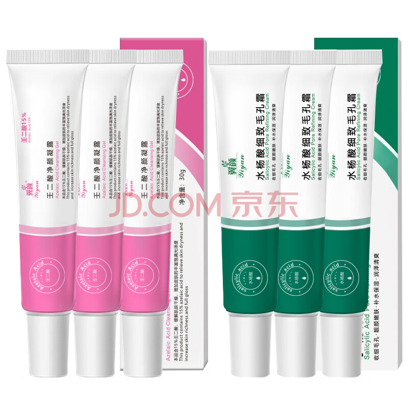 商品相册:翼颜壬二酸15%凝胶水杨酸细致毛孔霜软膏清痘凝露黑头粉刺乳膏30g 3套第