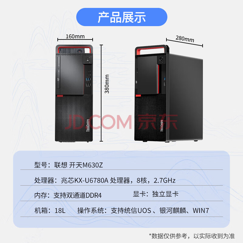 商品相册:联想国产化信创台式机 开天M630Z 兆芯KX-U6780A/8G/512G/2G/单主机 试用版麒麟 统信支持win/定制第