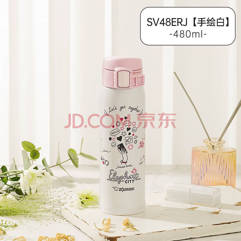 商品相册:象印(ZO JIRUSHI)保温杯 304不锈钢清新手绘进口保温保冷水杯480ml 手绘白 SM-SV48第