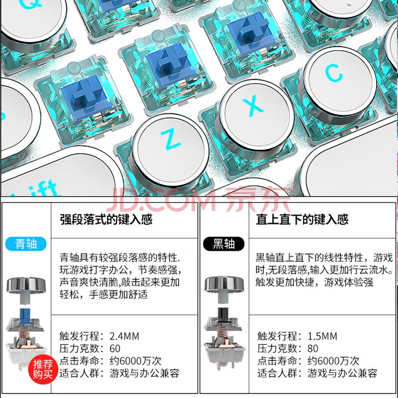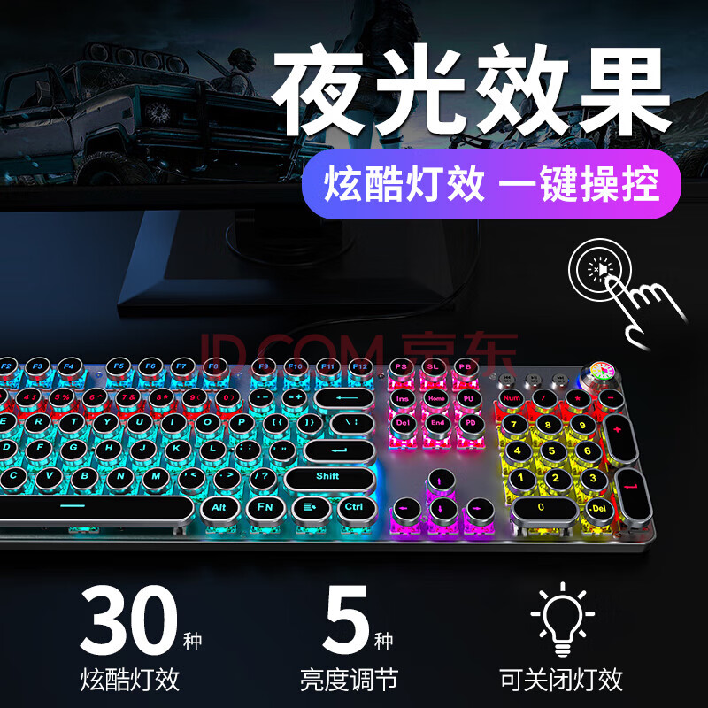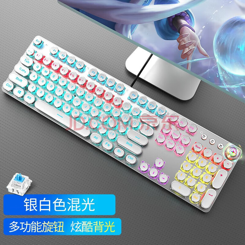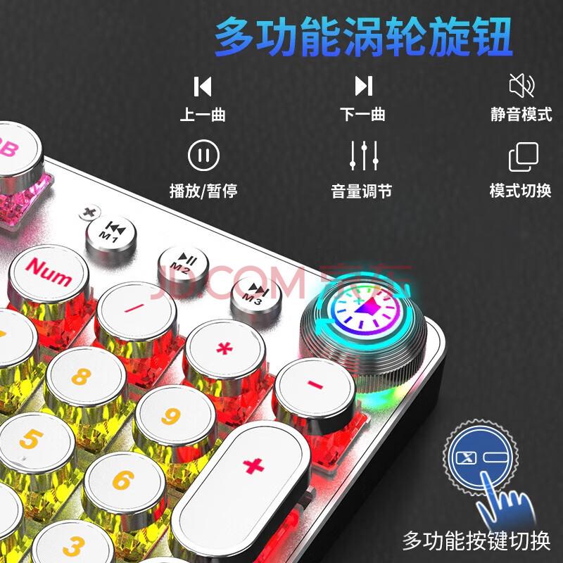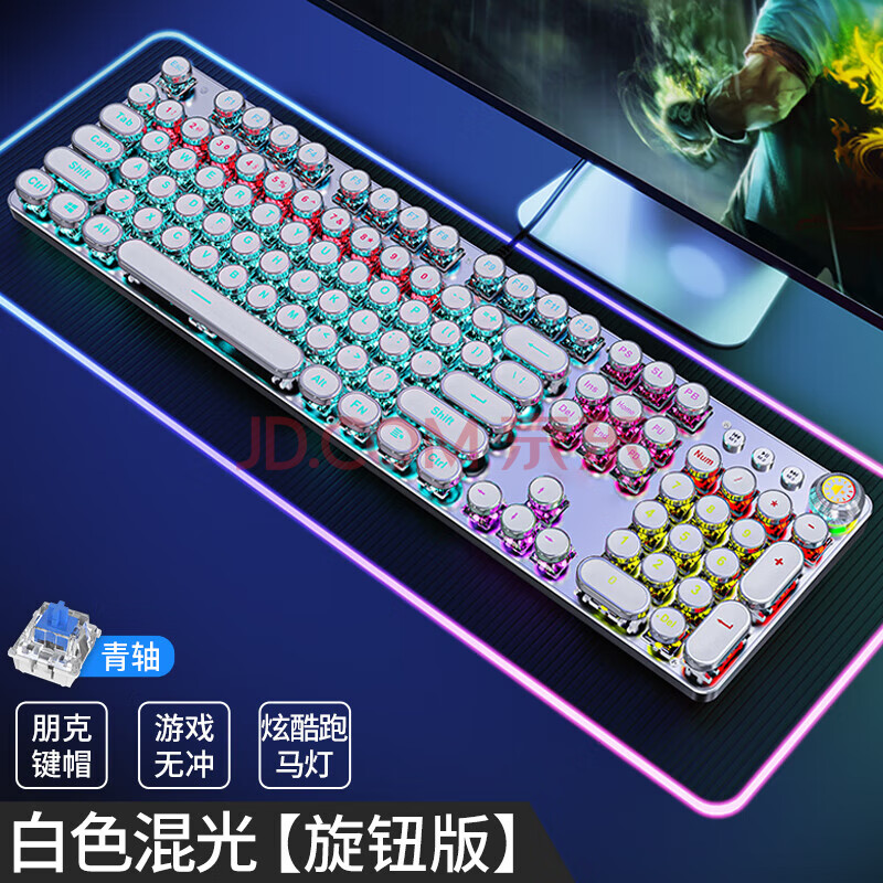 商品相册:前行者(EWEADN)TK100朋克机械键盘电竞游戏有线台式电脑笔记本外接办公打字复古外设吃鸡104键 白色混光青轴第