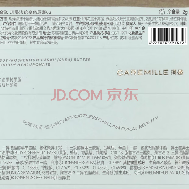 商品相册:珂曼(CAREMILLE)变色精油润唇膏滋润保湿防干裂女士不掉色口红2g#03第