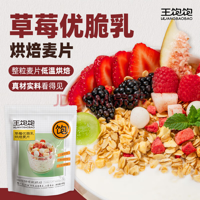 商品相册:王饱饱 草莓优脆乳烘培即食水果燕麦片早餐零食干吃代餐可搭配牛奶400g第