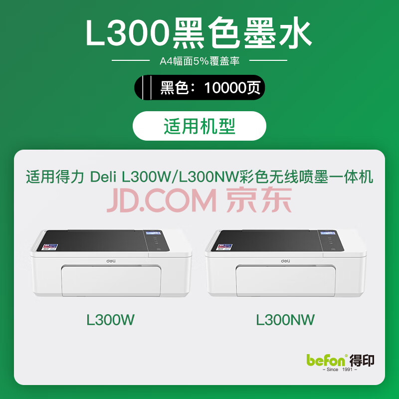 商品相册:得印 L300NW墨水墨盒 得力1K墨水瓶黑色 适用得力Deli L300W L300NW喷墨打印机墨盒墨水第