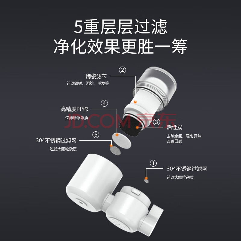 商品相册:京东京造 水龙头净水器滤芯3支装 家用厨房自来水前置过滤 可清洗滤芯第