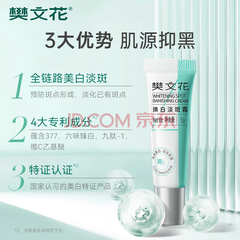 商品相册:樊文花4号焕白淡斑霜377美白淡斑提亮肤色烟酰胺祛斑面霜女5g第