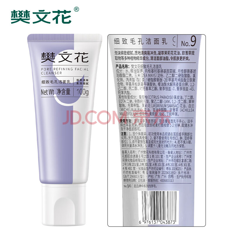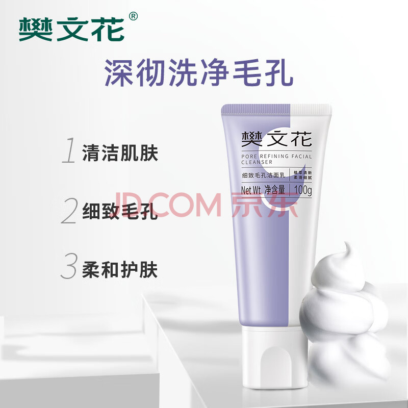 商品相册:樊文花9号细致毛孔洁面乳氨基酸洁面净肤清洁净透洗面奶送女生礼物第