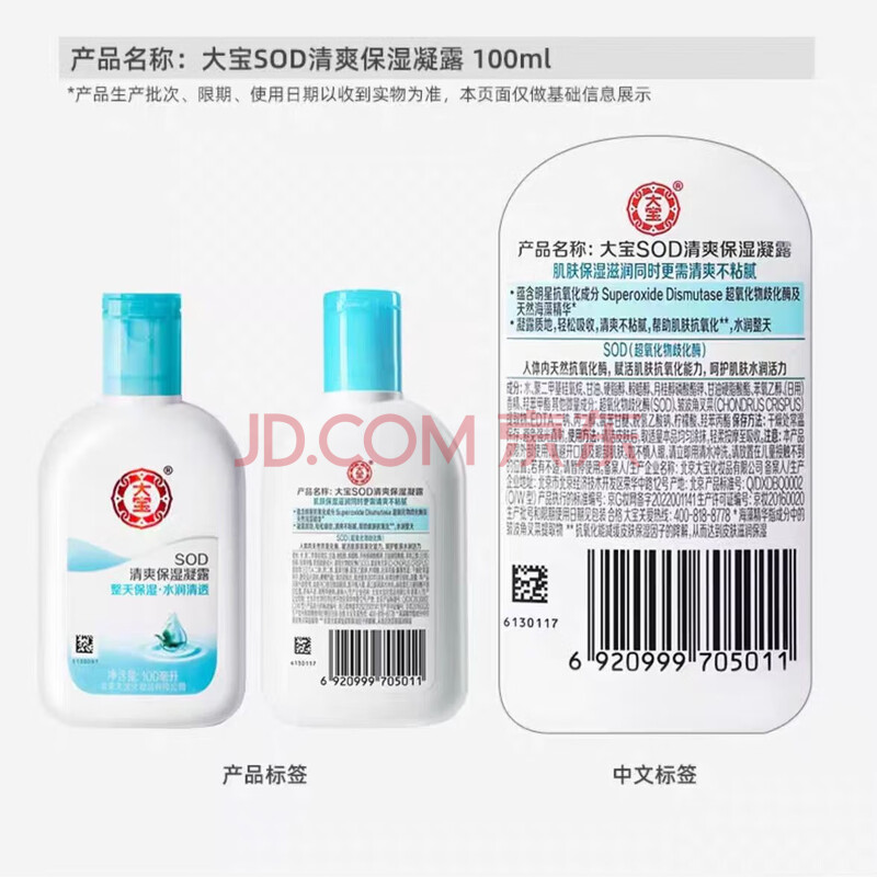 商品相册:大宝SOD清爽保湿凝露100ml*2乳液面霜擦脸油补水面部护肤品第