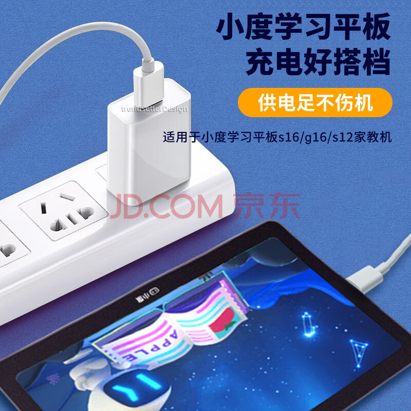 商品相册:trendsetter适用小度平板学习机充电器充电线g16 pro/K16/G12/s20/S16家教机早教机type-c数据线充电头套装第